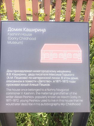 Алеши Пешкова. Здесь будущий писатель какое-то время жил ребенком. Очевидно, это были не «лучшие годы» – Горький рано лишился родителей и к бабушке с дедушкой приезжал не на каникулы. Википедия говорит, что Алеше выделили полуподвальное помещение с отдельным входом из сеней, музейщица поведала о другом: спал он в комнате бабушки, не на кровати, а на высоком сундуке. Но, возможно, пока мальчишеские размеры позволяли уместиться на метровой поверхности. Комнат в доме немного, насколько помню, включая кухню, они проходные, идут по кругу возле печи. Опять же Википедия сообщает (не помню такие детали, подглядываю), что комнат пять и в одно время в них проживали 16 человек. Возможно. Но так-то вторая половина XIX века, чему удивляться. Наши крестьянские предки и с меньшим комфортом жили, а так, прости Господи, у каждого есть свой угол. Даже четыре свободных остается. Но это, конечно, неуместная ирония, и обстановка впечатляет на самом деле, и многое объясняет в творчестве Алексея Максимовича. Повесть «Детство» из школьной программы автобиографическая и описывает события, происходящие именно в этом доме. Во дворе лежит огромный деревянный крест (оригинальный или нет, не уточнила), которым в упомянутом рассказе придавило Ивана-Цыганка. Уют деревянной избы, которым завлекают туристов в каких-нибудь Малых Корелах или Верхних Мандрогах тут как будто отсутствует, ну или эффективно изолирован от посетителей музейными лентами и запретами не трогать, не прикасаться, не смотреть, не дышать. Гнетущая атмосфера, несмотря на милые антикварные вещички в целом. Казалось. До одного момента.