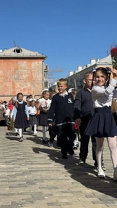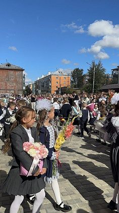 Следующей частью линейки стало исполнение гимна школы №2. Как сообщили ведущие, его сочинила ученица.