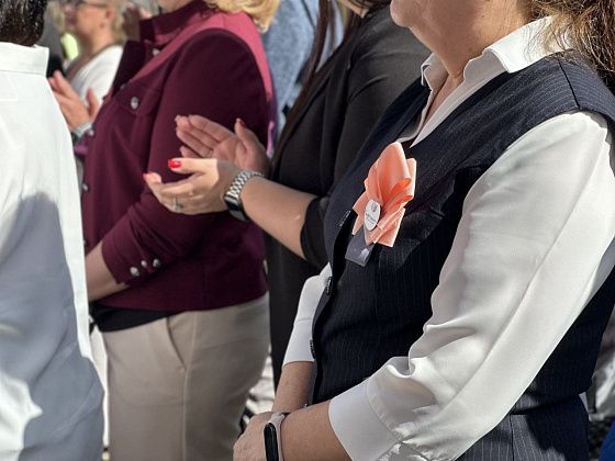 Линейка, посвященная к Дню знаний и открытию здания, началась с поднятия флагов Российской Федерации, Свердловской области и Краснотурьинска. После звучал гимн РФ.
