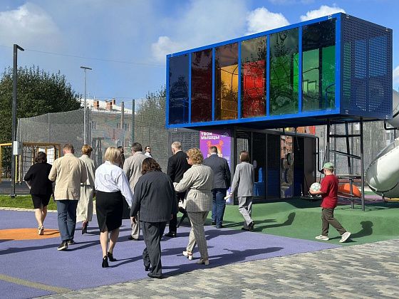После завершения линейки директор школы Сергей Кем провел для гостей экскурсию по территории учебного заведения.