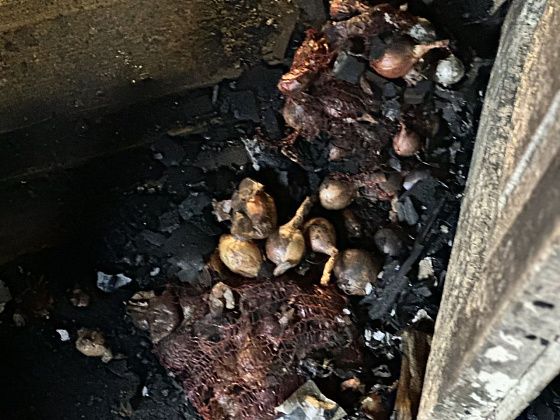 В огне погибли три собаки и два кота. Спастись удалось только пятимесячной кошке Маруське — она спряталась в подполье. Вечером хозяева вернулись на пепелище и услышали жалобный писк.
