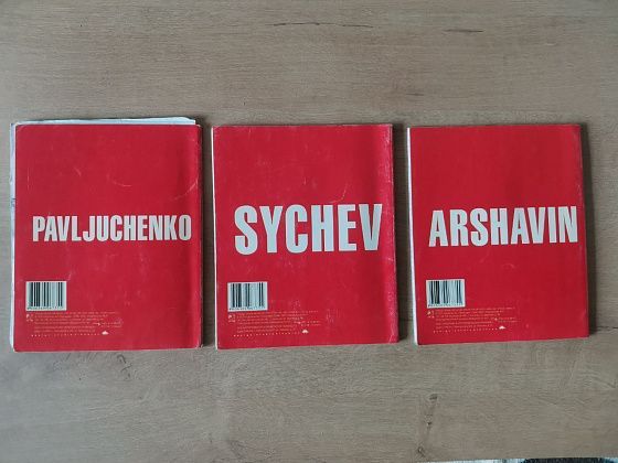 Отдельной строкой идет Чемпионат Европы по футболу 2008 года, где сборная России под руководством Гуса Хиддинка дошла до полуфинала и завоевала бронзу. Это породила всплеск любви к футболу, который, конечно, отразился и в школьных принадлежностях, в частности, в тетрадях. Здесь и обложки, посвященные каждому матчу отдельно (Россия – Швейцария, Россия – Греция), и посвященные отдельно взятым игрокам сборной.