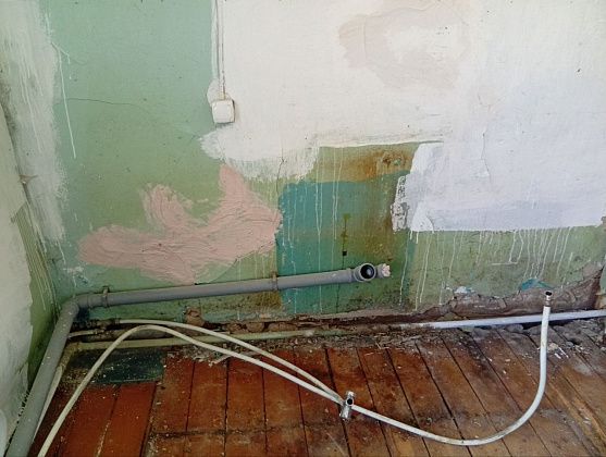 В начале июня к нам в гости на три дня приехали сестра с зятем, оба архитекторы - чтобы помочь начать ремонт. Планировали класть кафель на имеющийся деревянный пол. Но зять посоветовал от старых полов избавиться - иначе не факт, что плитка на досках со временем не начнет “гулять”. Вскрыли доски, выяснилось, что они довольно уже гниловатые. А под досками оказались глубокие, сантиметров 90, пустоты, которые в течение целого дня мы дружно, в 8 рук, закладывали всем, что оказалось под рукой - бэушными кирпичами, щебенкой, которую привезли, чтобы отсыпать дорожки в огороде, кусками арматуры, даже старыми металлическими кастрюлями. Верхний слой, сантиметров 30, бетонировали. Только на подготовку полов для укладки кафеля ушло два полных дня, с раннего утра до поздней ночи. После полы пришлось еще залить самовыравнивающейся смесью, чтобы по уровню было.