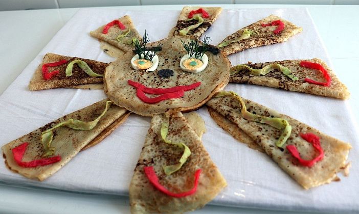 «Блюдо из блинов нужно было не просто красиво украсить, но и представить его. Так, участницы из отряда №1 построили «из блинов» бревенчатый дом и «поставили» к нему хранительницу очага, хозяюшку. Кулинары из отряда №2 соорудили из блинов качели, которые символизируют переход из зимы в весну, а затейницы из отряда №3 встретили жюри частушками. Женщины из третьего отряда приготовили торт из блинов, уложили на блюдо блинные мешочки, начиненные сладким кремом. Кулинарная композиция отряда №4 — колодец из блинчиков, наполненный черной икрой — символ достатка и даже роскоши. Сани, полные всякими вкусностями. Даже пенек и тот наполнен сладостями. В центре композиции — Блинная Баба, она же — хранительница домашнего уюта и тепла», — рассказали в пресс-службе ГУФСИН России по Свердловской области.