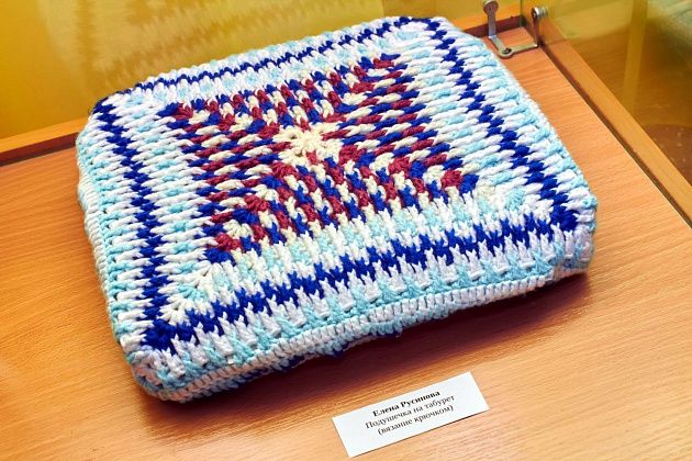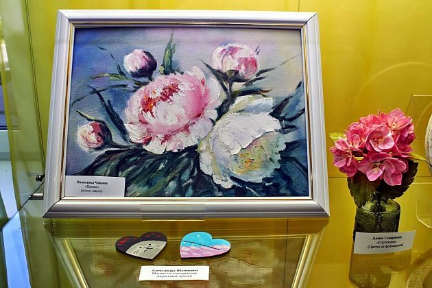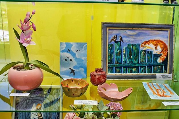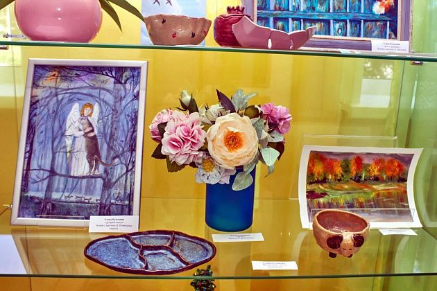 На выставке можно увидеть картины, выполненные в разных техниках, цветы из фоамирана, керамические изделия, кукол из ваты и вязаные вещи. Экспозиция получилась яркой и привлекательной, а работы вызывают восхищение своим мастерством и искренностью.
