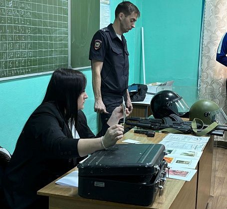 Сотрудники полиции совместно с председателем Совета ветеранов организовали для студентов экскурсию в комнату истории полиции и рассказали о специфике работы органов внутренних дел. Перед ребятами выступили врио начальника отделения по работе с личным составом (ОРЛС), эксперт экспертно-криминалистического отдела и кинолог. Каждый рассказал об особенностях своей профессии.