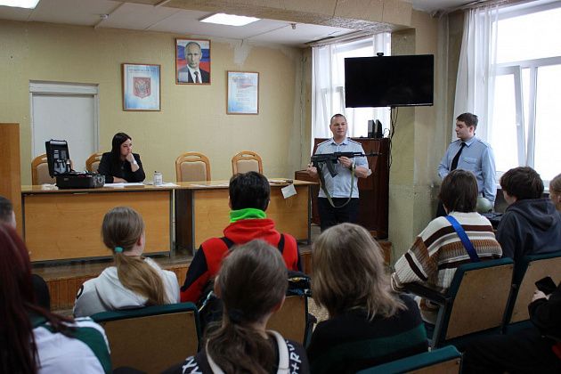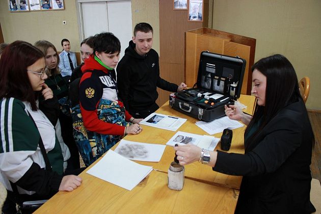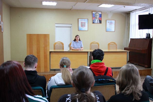 Сотрудники полиции совместно с председателем Совета ветеранов организовали для студентов экскурсию в комнату истории полиции и рассказали о специфике работы органов внутренних дел. Перед ребятами выступили: заместитель начальника полиции, эксперт экспертно-криминалистического отдела, инспектор по делам несовершеннолетних, инспектор по пропаганде и безопасности дорожного движения, старший психолог отдела по работе с личным составом. Каждый из них рассказал об особенностях своей профессии.