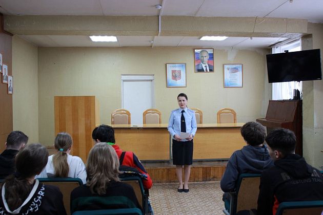 Анастасия Волкова напомнила об ответственности за участие в организованных преступных группах, предупредила ребят не реагировать на возможные призывы к противоправным действиям в социальных сетях.