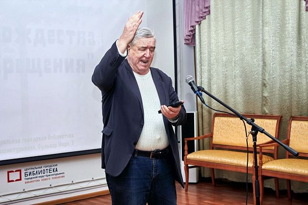 Выступает известный в Краснотурьинске поэт и бард Владимир Болдырев. Фото: Вадим Аминов, «Вечерний Краснотурьинск»