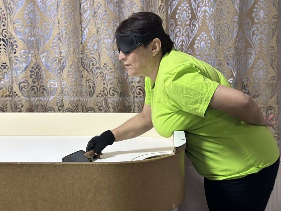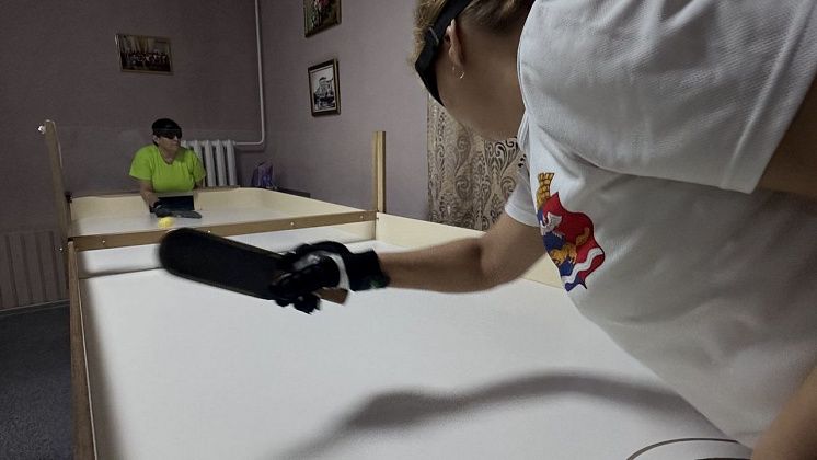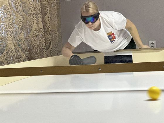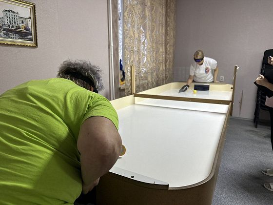 В рамках спартакиады в местном отделении Всероссийского общества слепых прошли соревнования по шоудауну — своеобразному настольному теннису для слабовидящих спортсменов, смеси аэрохоккея и пинг-понга.