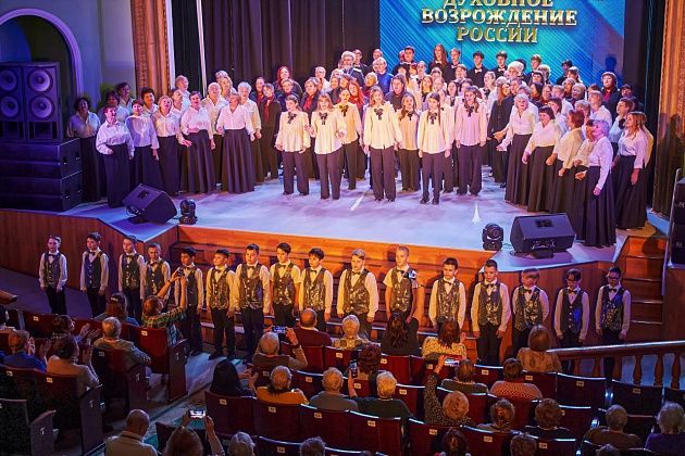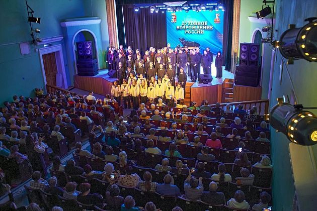 В городском дворце культуры состоялся традиционный фестиваль хорового искусства «Духовное возрождение России». В этом году он был посвящен Году защитника Отечества и 80-летию Победы в Великой Отечественной войне.