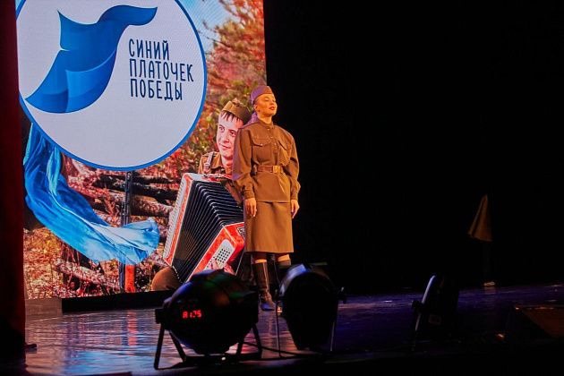 Здесь отметили, что символом вклада женщин в Победу стала песня «Синий платочек», исполненная Клавдией Шульженко. Участники акции также надели синие платочки — в знак уважения и признательности.