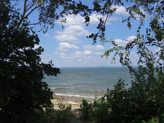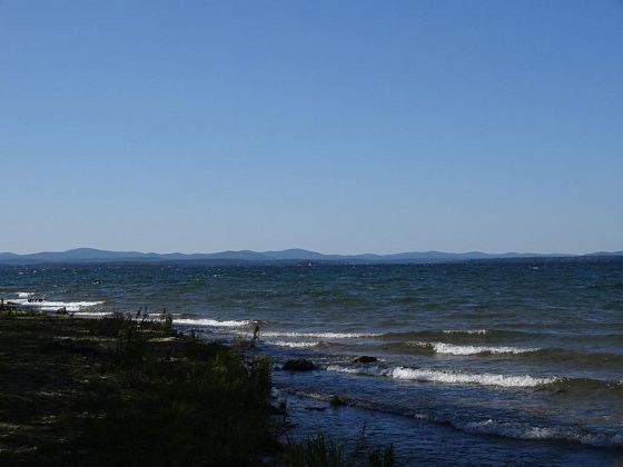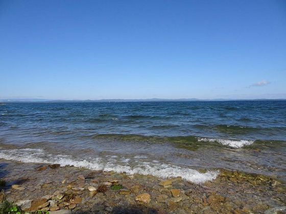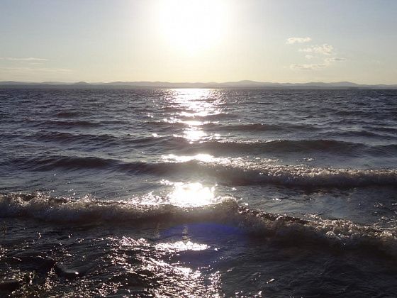 Это сразу бьет под дых: идешь к озеру, а оно прикидывается морем. Синь, которая переходит в зелень, которая переходит в голубоватый хрусталь, который разбивается о берег… Чайки, разумеется; и ветер, и волны, и голубоватая дымка, а в ней намек на горы… совершенно крымский пейзаж.