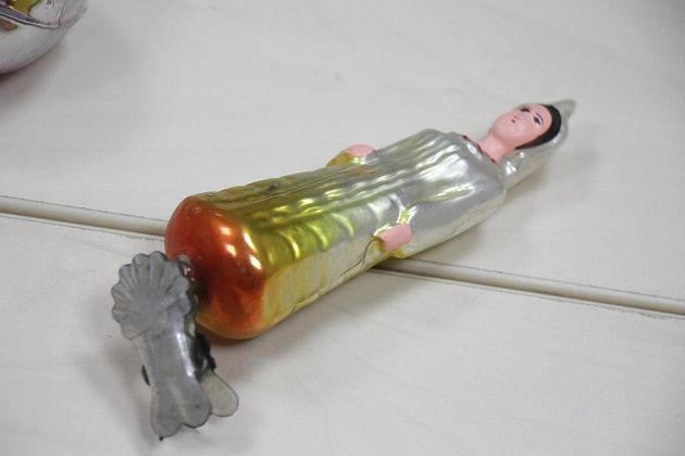Эта игрушечка 50-х годов. Нам дедушка ее со своей елки презентовал. Когда к нам бабушка с дедушкой приходили, они нам приносили кроме сладких подарков такие штучки.
