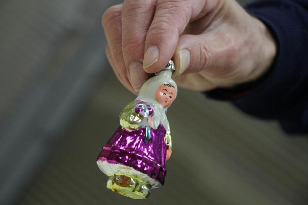 – Дедушка не любил никаких звездочек, поэтому он покупал такие нейтральные верхушечки, без всякой символики, – отмечает историк и достает стеклянную фигурку девочки с букетом цветов. –