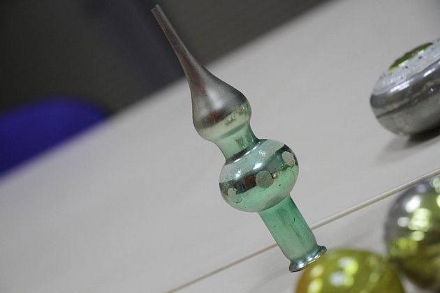 Особняком стоят игрушки, которые дарил дедушка. Среди них – небольшая стеклянная верхушка для елки.