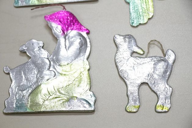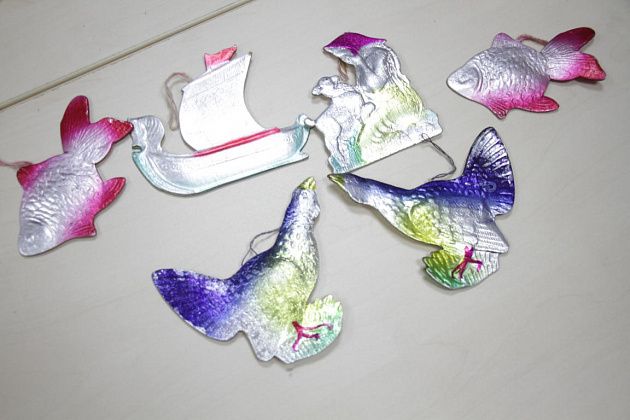 И из пакета стали появляться на свет различные шишечки, шарики, фигурки людей и животных – стеклянные, из картона и пенопласта, сверкающие позолотой и серебром.